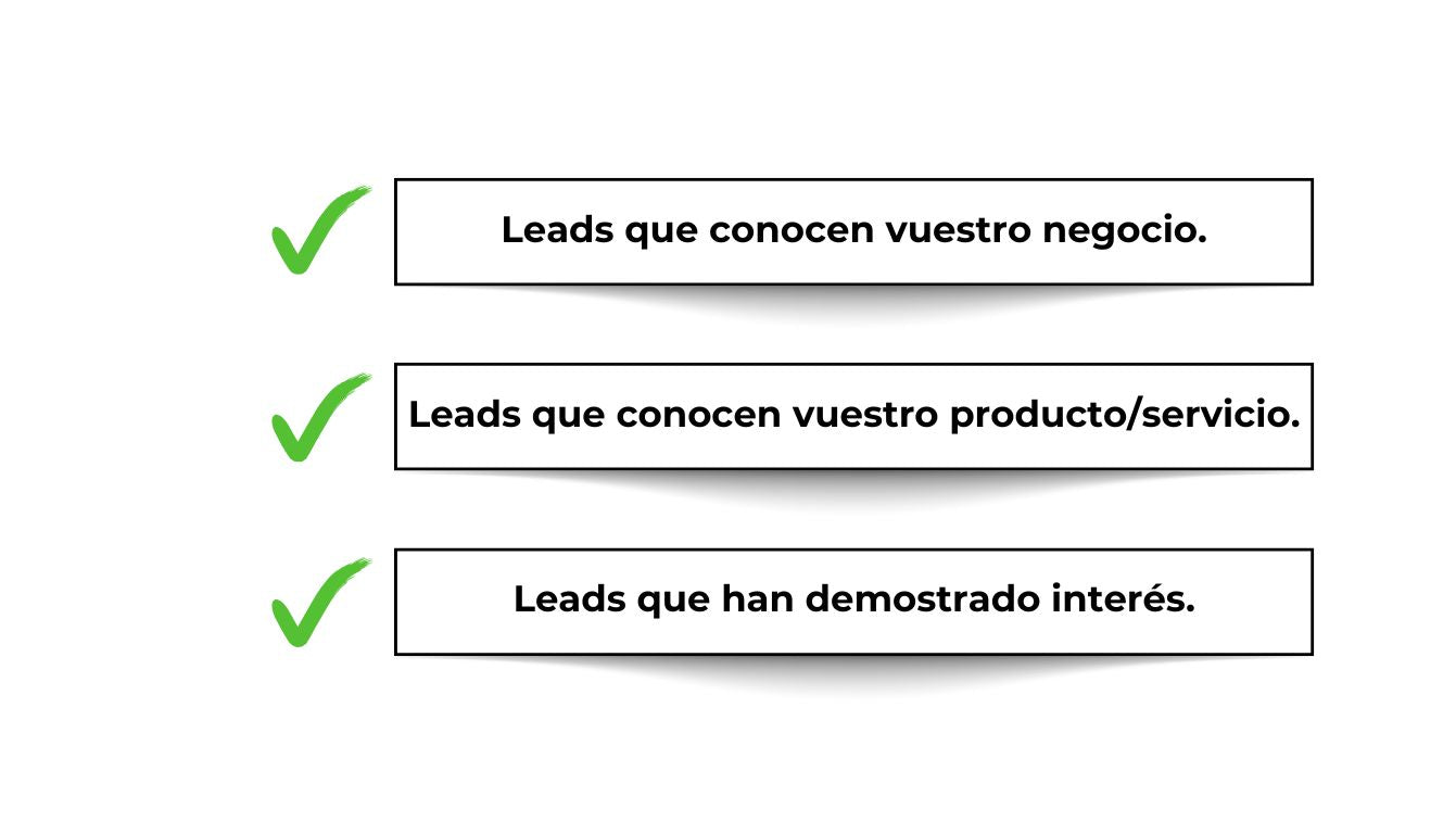 Los leads que agendan reunión previamente han conocido quienes sois, y que producto o servicio ofrecéis.