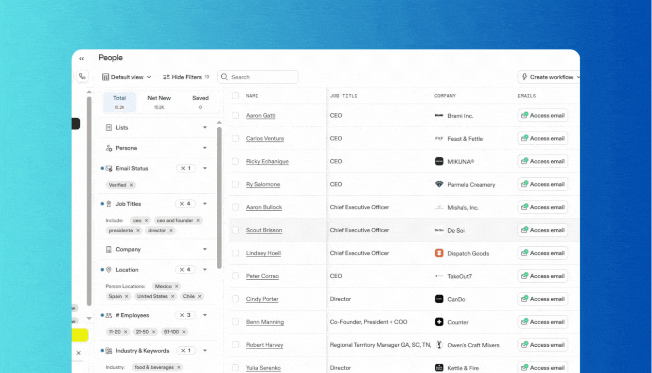Ejemplo: 10.000 CEOS del sector de material de construcción en Estados Unidos.